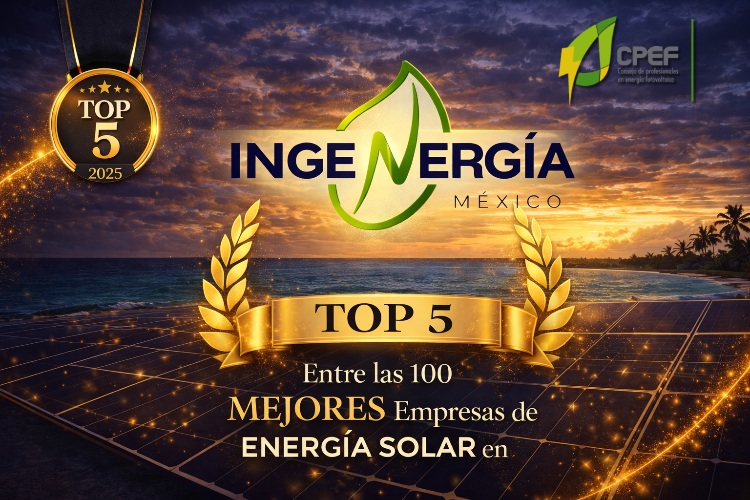 El Monitor Solar 2025 de CPEF, la radiografía más completa del sector solar en México, reconoció a Ingenergía de México dentro del Top 5 de empresas de generación distribuida en Quintana Roo y dentro del Top 100 a nivel nacional.